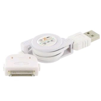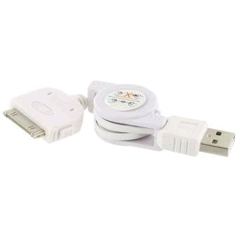 Câble USB iPhone rétractable. Compatible iPhone 1, 3G/S, 4, 4S. Un accessoire iPhone iPod iPad très pratique. Noir ou blanc selon arrivage |