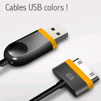 Câble USB iPhone iPod couleur noir et orange. très beau produit épuré et design, compatible mac et PC. Dim 100 cm Poids 20g. Disponible en bleu et vert. (non compatible iPhone 5). |