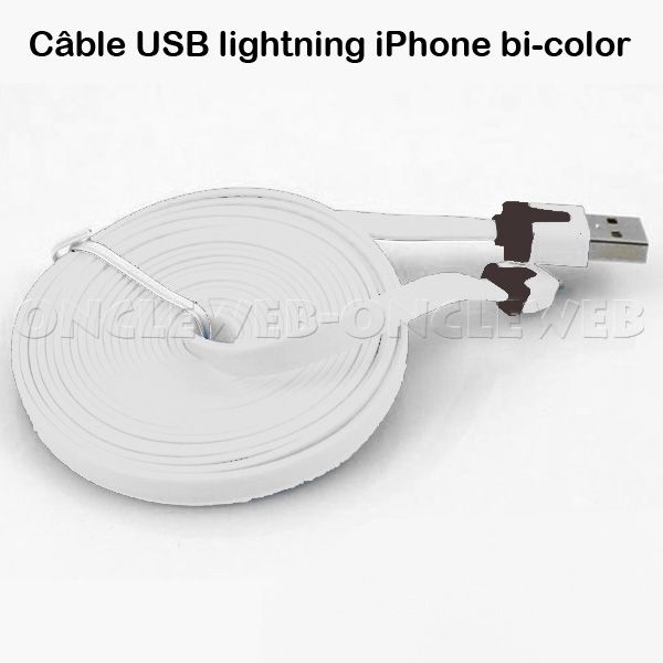 Câble USB lightning iPhone 6 /5/5S /5C / iPad mini bi-color est le câble indispensable parfaitement compatible pour recharger et synchroniser votre iPhone 5/5s/5c ou iPad mini avec un Mac ou un PC.