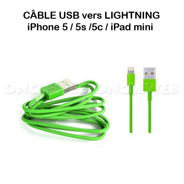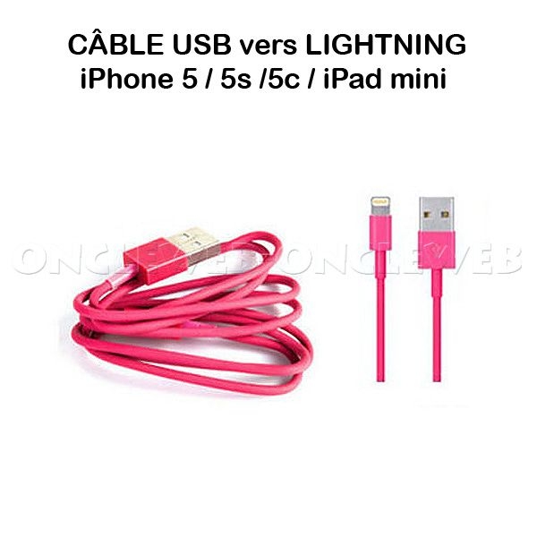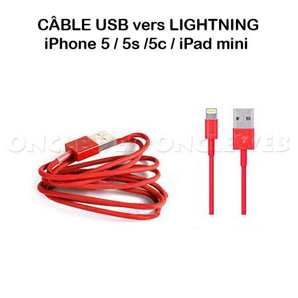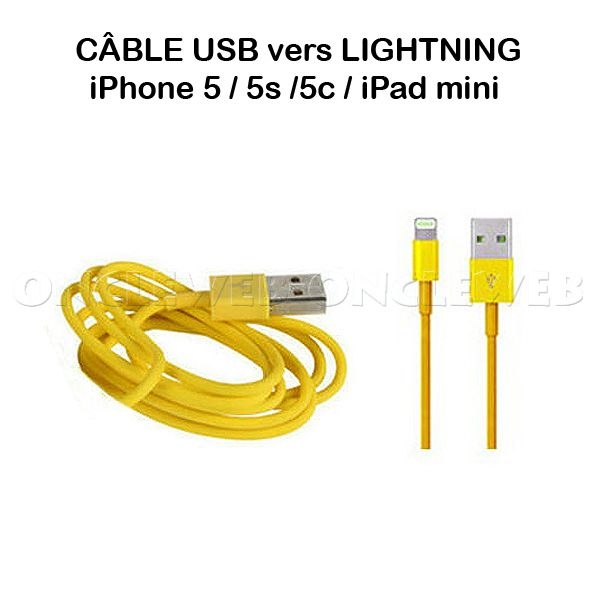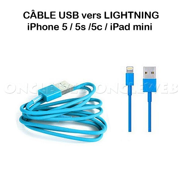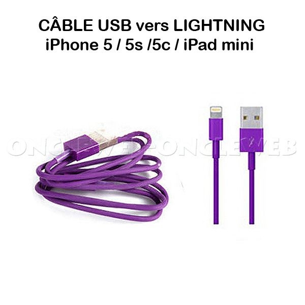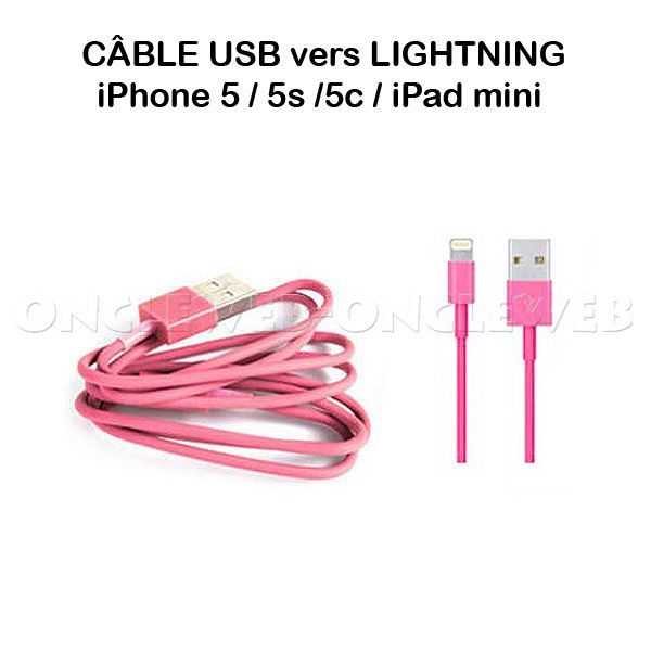 Câble USB lightning iPhone 6 5/5S /5C / iPad mini couleur est le câble indispensable parfaitement compatible pour recharger et synchroniser votre iPhone 5/5s/5c ou iPad mini avec un Mac ou un PC.