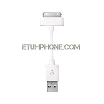Mini câble USB iPhone iPod iPad blanc, 7 cm. (non compatible iPhone 5 sans l'adaptateur connecteur). |