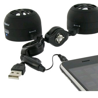 Un son redoutable, une portativité otpimale, un look étonnant, découvrez les enceintes Mini Dual: Taille réduite, les deux enceintes sont jointes grace à une base aimantée. Amplificateur de basses façon subwoofer Batterie haute capacité rechargeable Cables extensibles Housse de voyage