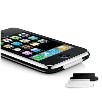 Capuchon de protection blanc ou noir pour connecteur iPhone iPod . Idéal à la plage et/ou en milieu hostile ! Compatible tous modèles iPhone 4S 4 3G/S 1G