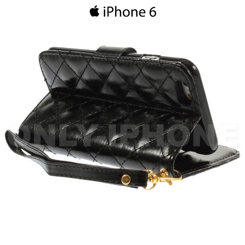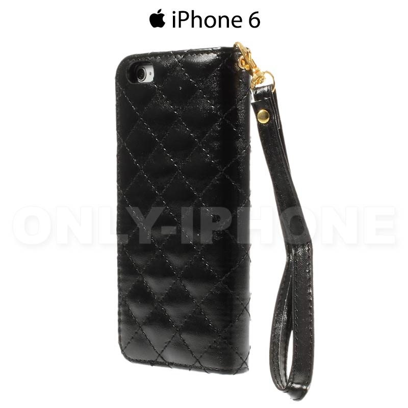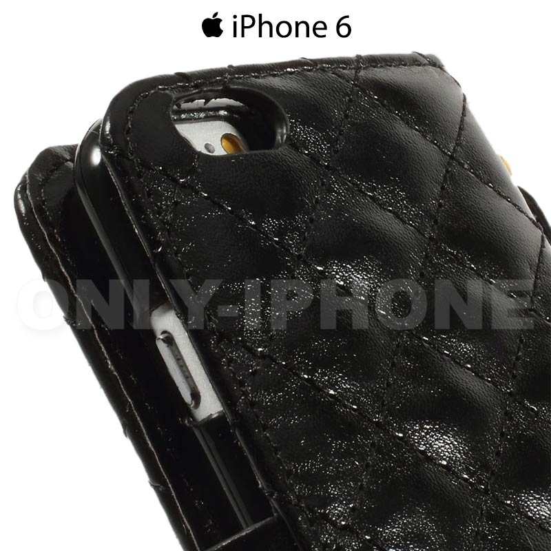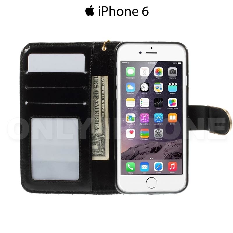 Étui Glam Strass iPhone 6 6s en cuir pu noir avec une fermeture diamant aimantée.