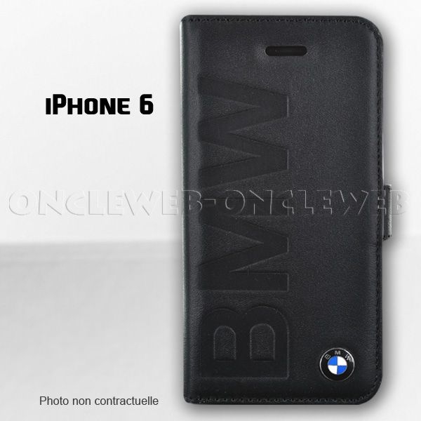 Superbe étui iPhone 6 BMW à rabat en cuir bleu marine.