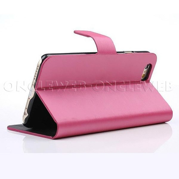 En plus d’une très bonne tenue en main, cet étui iPhone 6 brossé portefeuille, vous offre un large choix de couleur : noir, bleu, gold, rose et parme |