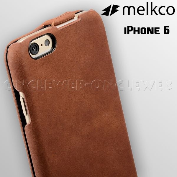 Magnifique étui iPhone 6 cuir luxe clapet vintage melkco en cuir véritable cousu main.