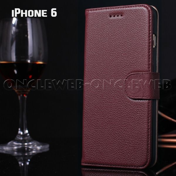 Choisissez un étui de haute qualité en cuir luxe pour votre iPhone 6, couleurs disponible : marron, rose, bleu foncé, bordeaux et noir. |
