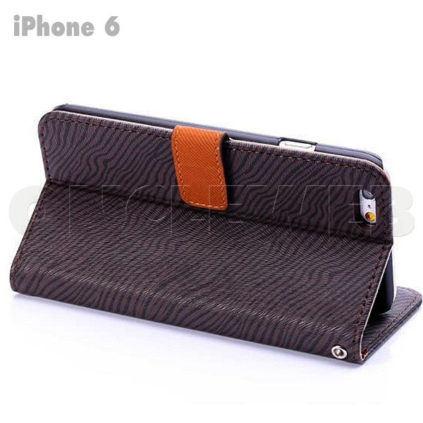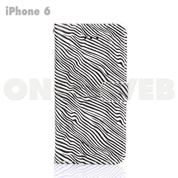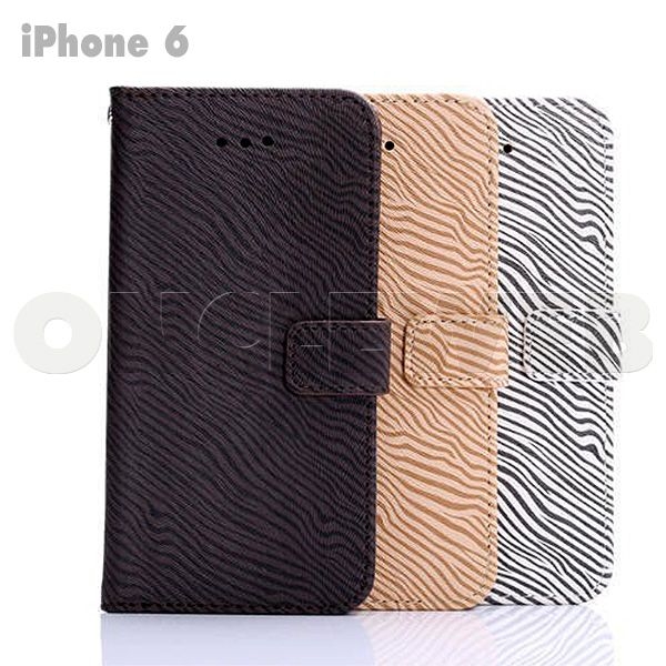 Bel étui iPhone 6 zèbre en simili cuir avec ouverture portefeuille et fermeture aimantée.