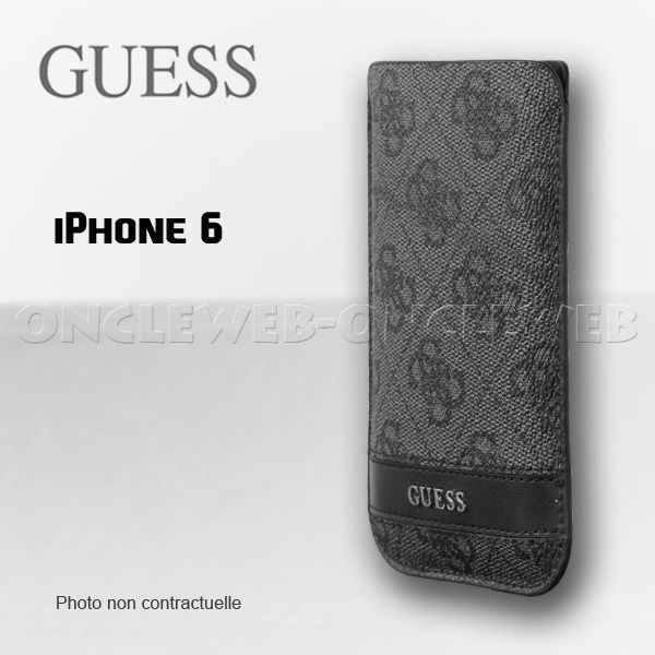 Cette pochette protège votre iPhone 6 des chocs et des rayures. Le logo Guess est en relief et en métal à l'avant sur une bande de cuir noir.
