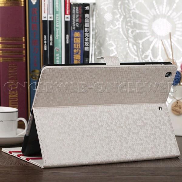 Très bel étui iPad Air blanc effet nid d’abeille qui dispose de la fonction chevalet. Vous pouvez ainsi regarder vos vidéos et photos en mode paysage tout en laissant votre tablette dans l’étui.