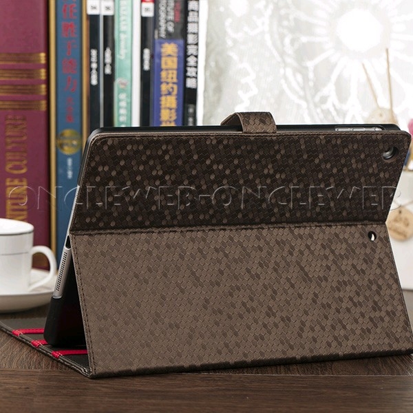 Superbe étui iPad mini marron effet nid d’abeille qui dispose de la fonction chevalet. Vous pouvez ainsi regarder vos vidéos et photos en mode paysage tout en laissant votre tablette dans l’étui.