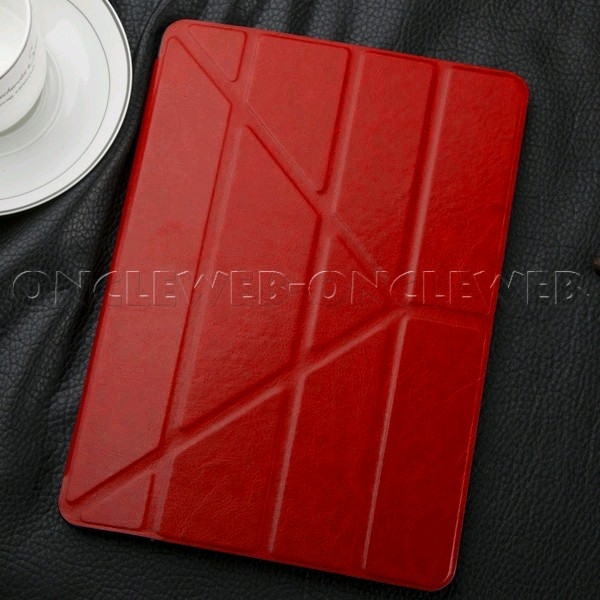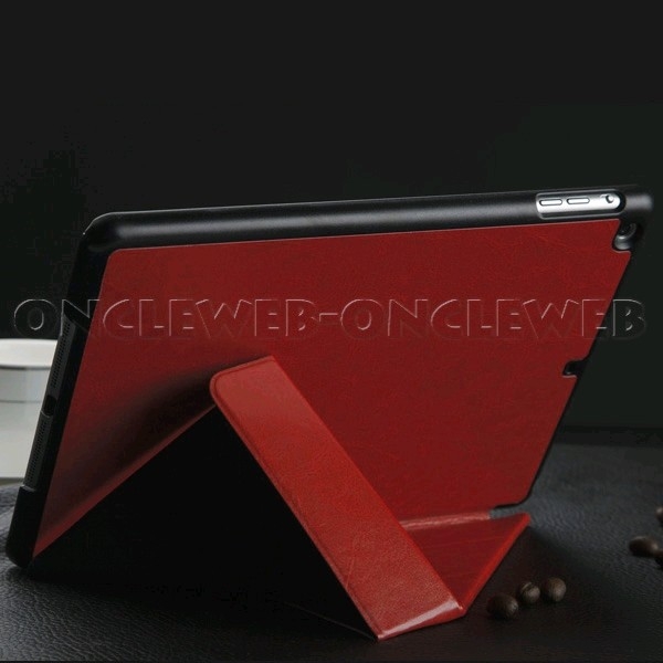 Superbe housse iPad mini stand rouge de style origami, composée d’une coque en plastique résistante qui dispose de toutes les découpes nécessaires pour l’utilisation de votre tablette.