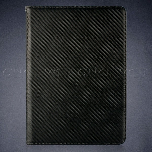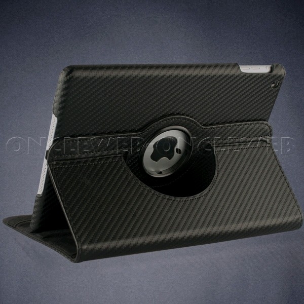 Superbe housse iPad noir carbone 360 rotatif en simili cuir compatible pour les iPad 2 / iPad 3 Nouvel iPad / iPad 4 Retina.