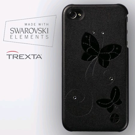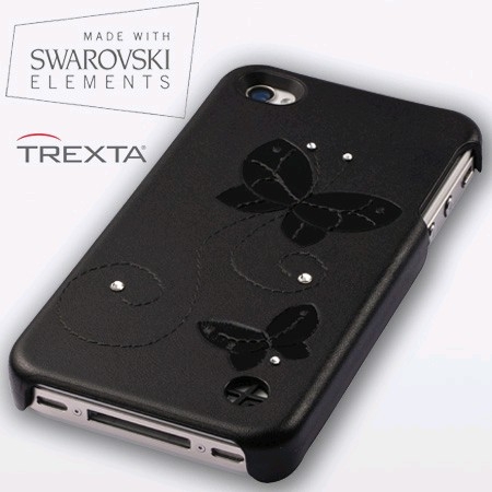 Magnifique coque iPhone 4 / 4s cuir noir Swarovski / Trexta qui est fabriquée avec de véritables cristaux Swarovski . Cette coque est en cuir véritable signée par les célébres marques TREXTA et Swarovski Elements.