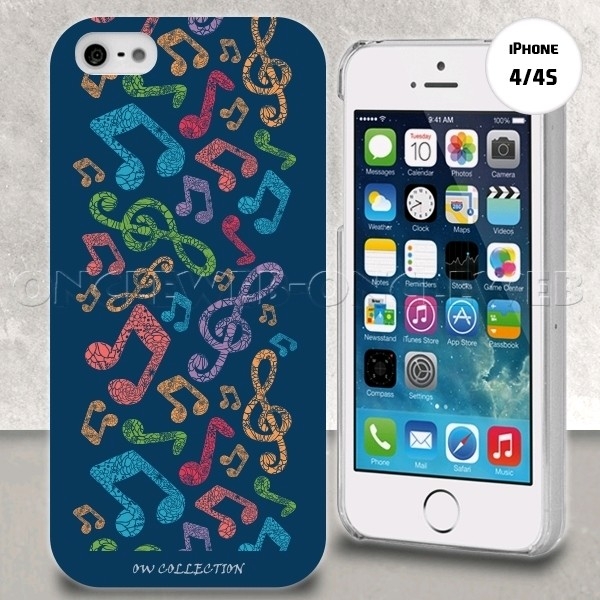 Très belle coque iphone 4 music notes aux bordures transparentes.