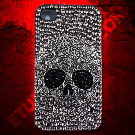 Cette coque pour iPhone 4/4S tête de mort strass est sur fond noir avec des strass et une tête de mort couleur argent en 3D. La coque est rigide et de style gothique. Vous avez accès à toutes les fonctionnalités de votre mobile tout en le protégeant des chutes et des chocs. Chaque coque est unique car les strass sont collés à la main. Vous aussi habillez votre iPhone 4 pour Halloween. |
