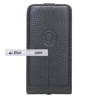 Superbe etui signé façonnable pour iPhone 4 et 4S cuir noir grainé, coutures apparentes, se clipse sur coque PVC, rabat avec fermeture magnétique. Doublure microfibres, Très beau produit