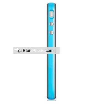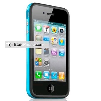 Bumper silicone semi-rigide noir bleu iPhone 4/4S Edition Spéciale avec des sur-boutons métal, très belle fabrication, design, une protection efficace qui améliorera la reception de votre iPhone. Un best