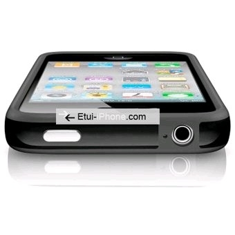 Bumper silicone semi-rigide noir iPhone 4/4S Edition Spéciale avec des sur-boutons métal, très belle fabrication, design, une protection efficace qui améliorera la reception de votre iPhone. Un best.