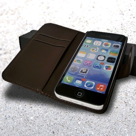 Comment résister à ce très bel étui pour iPhone 4 / 4S cuir duo marron portefeuille, travaillé de deux styles différents ?