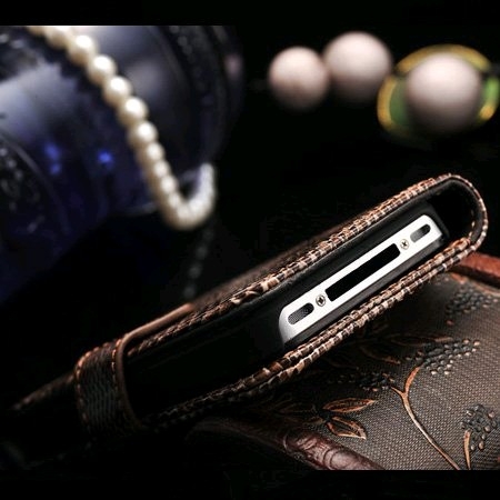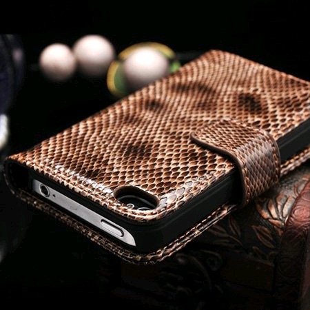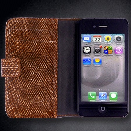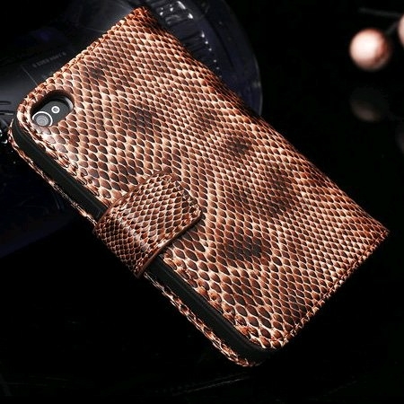 Très bel étui iPhone 4/4S en cuir véritable effet serpent marron glossy, constitué d'une coque rigide et d’un clapet à fermeture aimantée pour protéger votre iPhone. Très pratique il est doté de deux emplacements intérieurs pour stocker vos cartes. Toutes les fonctions de vote iPhone restent accessibles facilement grâce à cet étui très élégant et tendance. Alors n’hésitez plus …Existe dans d'autres coloris : noir, rouge et violet
