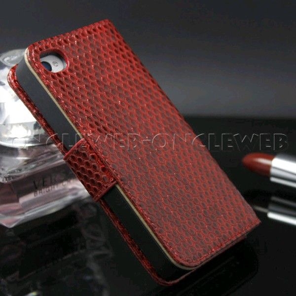 Magnifique étui cuir véritable effet serpent rouge, grâce à un revêtement verni qui donne à votre iPhone 4/4S la couleur rouge glossy très tendance.