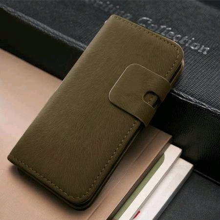 Très bel étui iPhone 4 /4S en cuir marron kaki portefeuille soft, tendance avec son système chevalet. Vous pouvez positionner votre mobile en mode paysage pour regarder vos vidéos et photos. Il absorbe les chocs et maintien parfaitement votre iPhone grâce à sa coque fixée à l’étui.