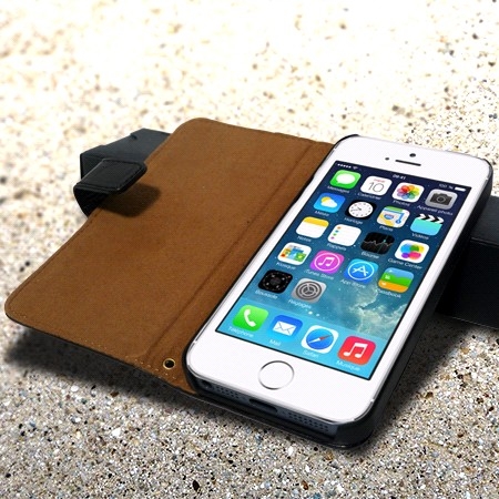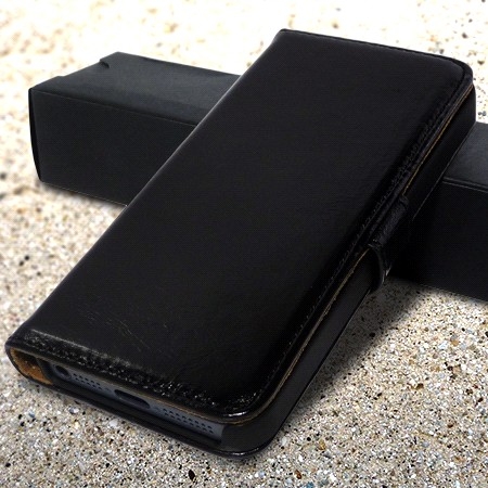 Magnifique étui iPhone 4 / 4s cuir portefeuille luxe noir brillant, en cuir véritable de très haute qualité.