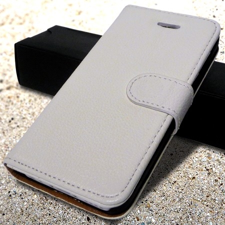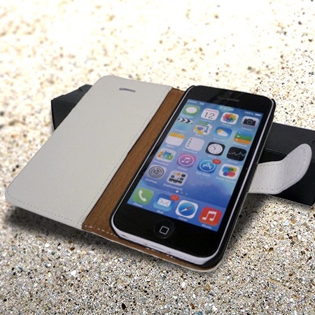 Magnifique étui iPhone 4 / 4s cuir véritable grainé luxe blanc avec système chevalet, légèrement brillant, en cuir véritable de très haute qualité.