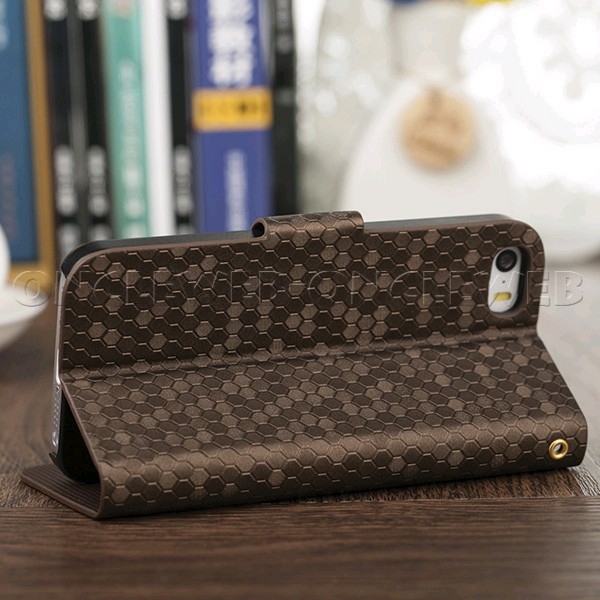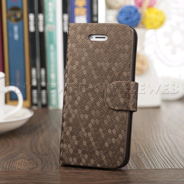 Très bel étui iPhone 4 / 4s marron effet nid d’abeille portefeuille qui dispose de la fonction chevalet. Vous pouvez ainsi regarder vos vidéos et photos en mode paysage tout en laissant votre mobile dans l’étui.