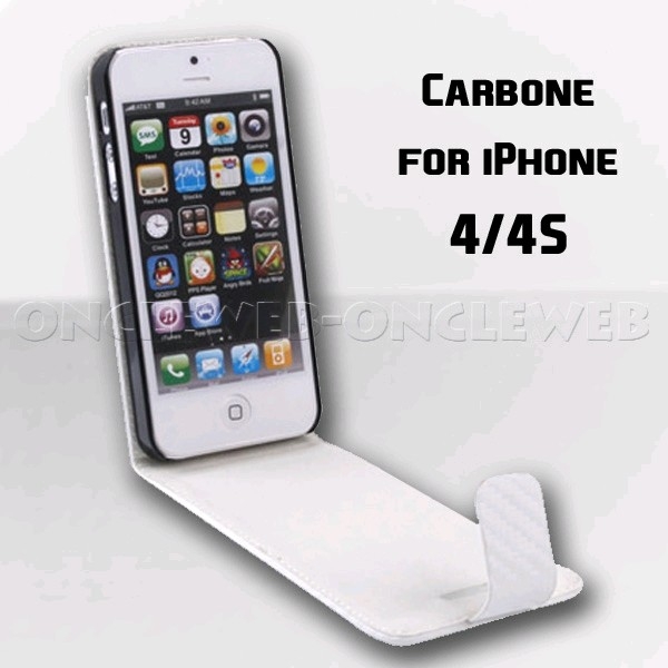 | Etui iPhone 4/4S simili cuir clapet carbone blanc |