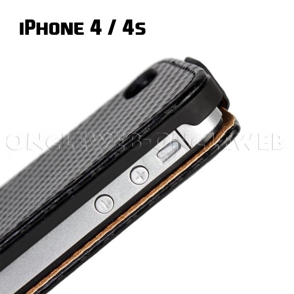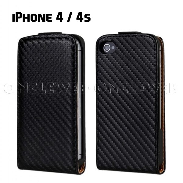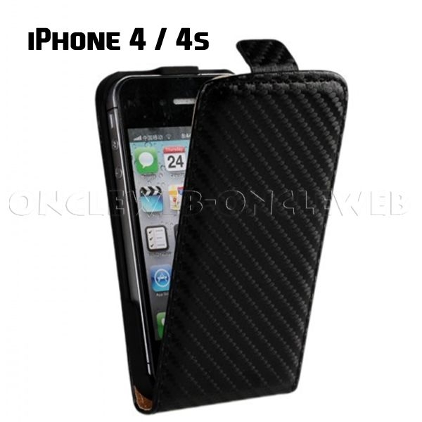 Etui iPhone 4/4S simili cuir effet carbone noir, un produit simple efficace et design premier prix.