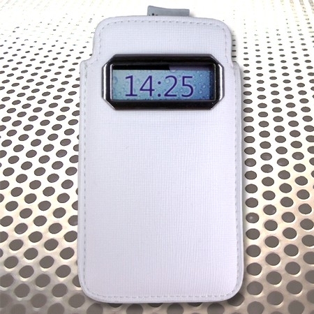 Cette housse pour iPhone 4 blanche avec fenêtre horloge pull up est très pratique. Elle est en éco-cuir et vous permet de voir l'horloge sans sortir votre mobile ! Elle protège votre iPhone contre les rayures, les chocs et la poussière tout en étant très facile d'utilisation. Vous glissez votre iPhone à l'intérieur de l'étui et tirez sur la languette pour le sortir. Cette housse existe aussi en blanc.