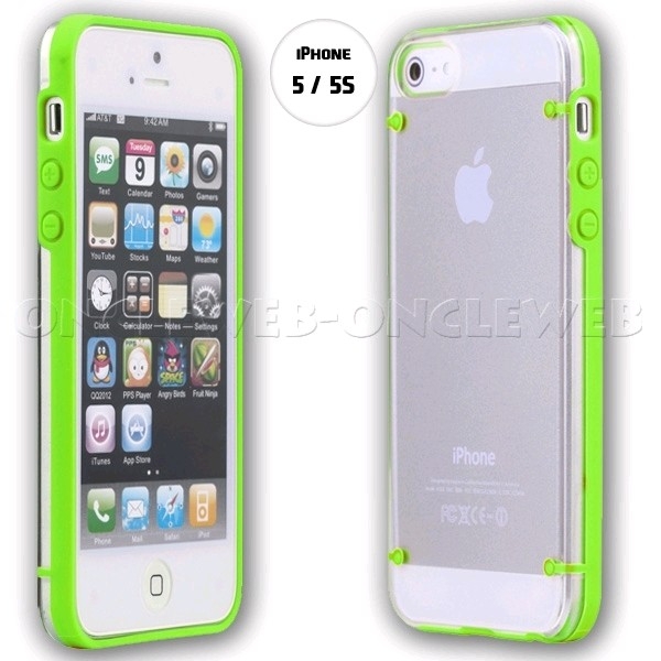 Coque iphone 5s transparente vert en plexi et silicone est idéale pour protéger votre iPhone 5 / 5s.