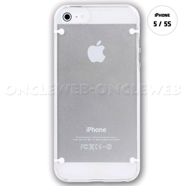 Super coque iphone 5s transparente blanche en plexi et silicone est idéale pour protéger votre iPhone 5 / 5s.