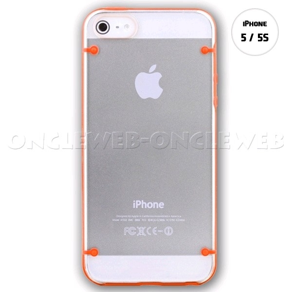 Cette coque iphone 5s transparente orange en plexi et silicone est idéale pour protéger votre iPhone 5 / 5s.