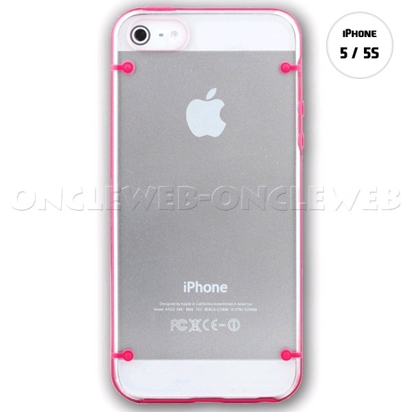 Coque iphone 5s transparente rose en plexi et silicone est idéale pour protéger votre iPhone 5 / 5s.