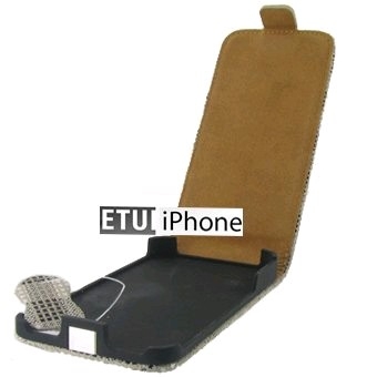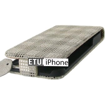 Etui cuir clapet iPhone 5, iPhone 5s façon vichy dans les tons sable, intérieur cuir brun clair.