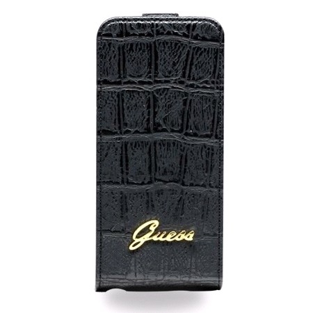 Très bel étui iPhone 5/5s GUESS noir effet croco constitué d'une coque rigide et d’un clapet à fermeture aimantée pour protéger votre iPhone 5. L'intérieur est doublé en suédine pour protéger votre écran des rayures. La finition extérieure est en effet croco mat et le logo GUESS est en couleur or. Produit très élégant et tendance.