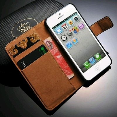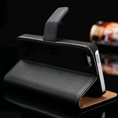 | Etui cuir portefeuille chevalet noir pour iPhone 5/5S |