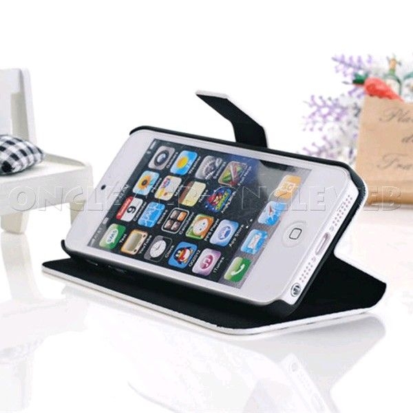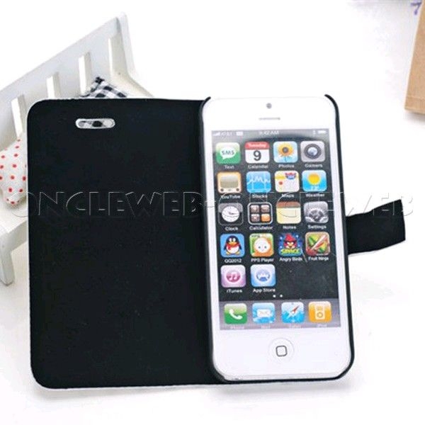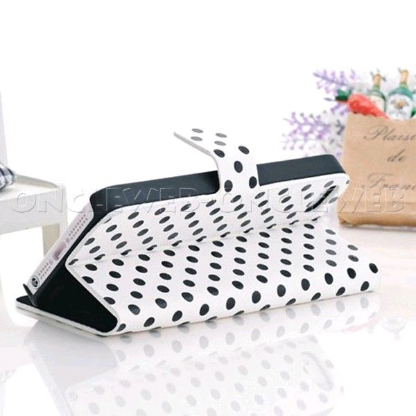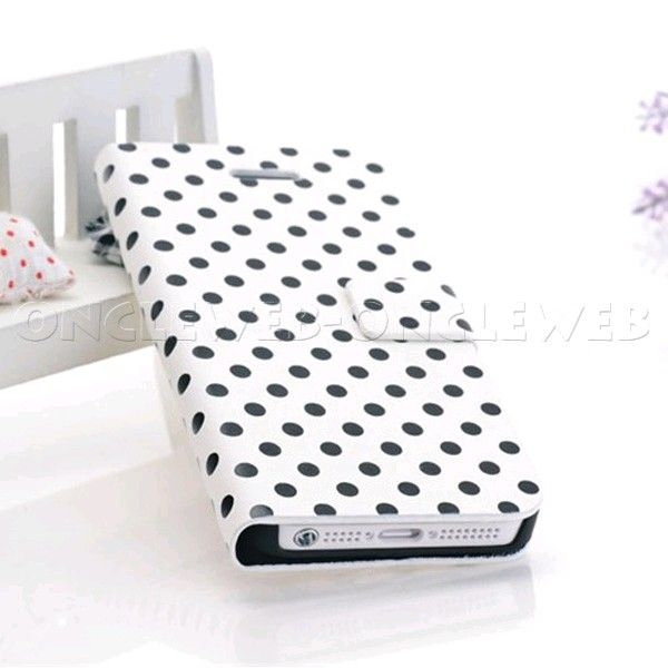 Cet étui pour iPhone 5 / 5s portefeuille blanc à pois est constitué d’une coque rigide noire pour maintenir durablement votre iPhone 5 / 5s.