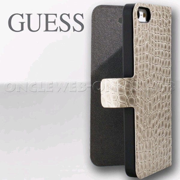 Très bel étui iPhone 5/5S portefeuille GUESS effet croco brillant beige. Grâce à la coque rigide et à la fermeture latérale aimantée, votre iPhone 5/5s est parfaitement maintenu tout en vous laissant accès à toutes les fonctionnalités.