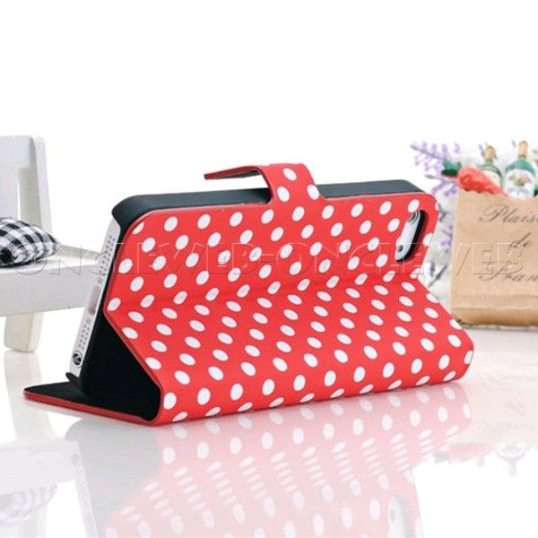 Cet étui pour iPhone 5 / 5s portefeuille rouge à pois est constitué d’une coque rigide noire pour maintenir durablement votre iPhone 5 / 5s.