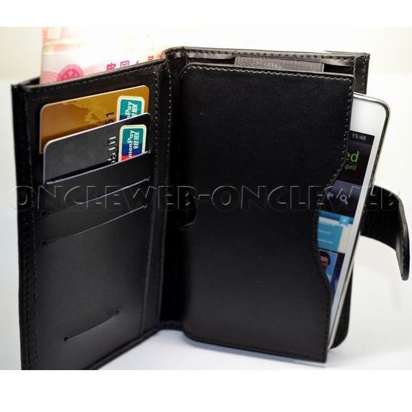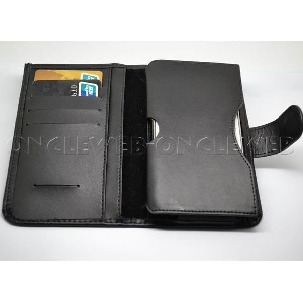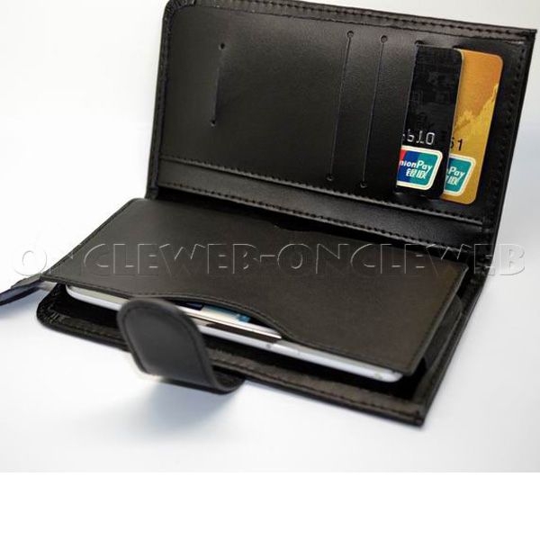 Etui iphone 5 5s SE double porte carte en cuir véritable noir.