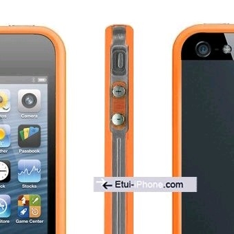 Bumper silicone semi-rigide orange et cristal pour iPhone 5. Edition Spéciale avec des sur-boutons métal, très belle fabrication, design, une protection efficace qui améliorera la reception de votre iPhone. Un best.