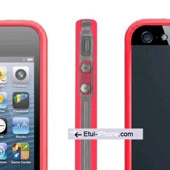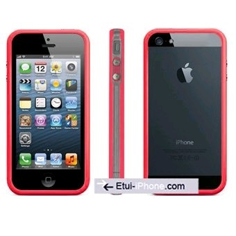 Bumper silicone semi-rigide rouge et cristal pour iPhone 5. Edition Spéciale avec des sur-boutons métal, très belle fabrication, design, une protection efficace qui améliorera la reception de votre iPhone. Un best.