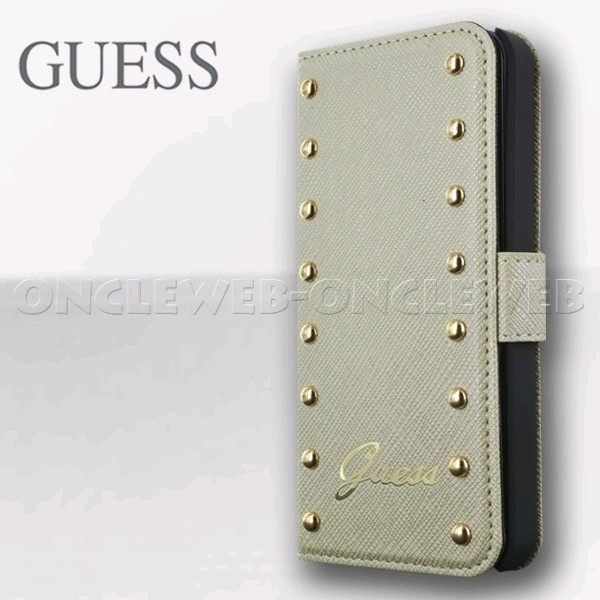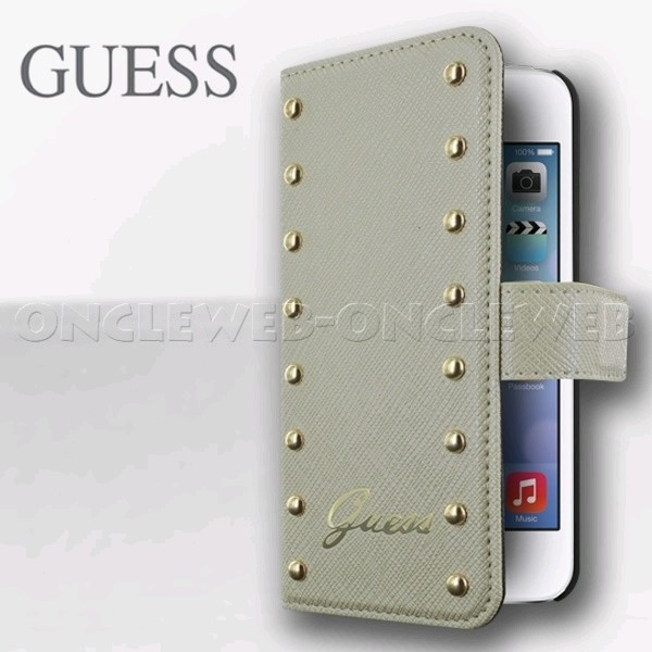Magnifique étui iPhone 5 clouté beige by Guess orné de clous dorés.