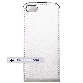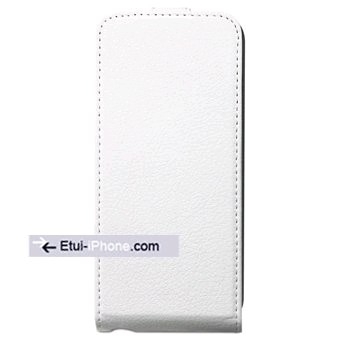 Etui housse cuir blanc clapet iPhone 5 Eco, rabat avec petite languette magnétique, ouverture verticale vers le bas, une protection optimale contre les chutes et les chocs. Intérieur nubuk. Très beau produit à petit prix.