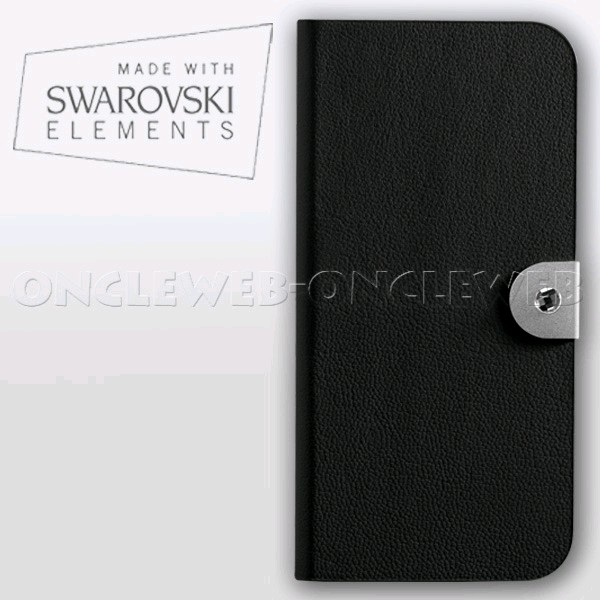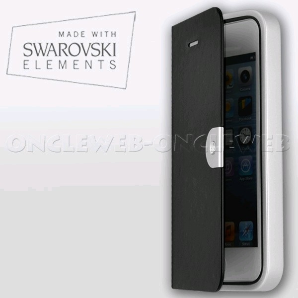Somptueux étui iPhone 5 cuir luxe noir by Swarovski !